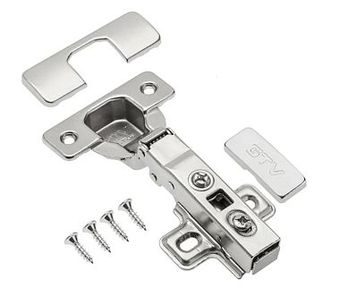 Петля GTV PRESTIGE Clip-On полунакладная 102°, с монт. планкой H0, декор. накладки, саморезы, с доводчиком