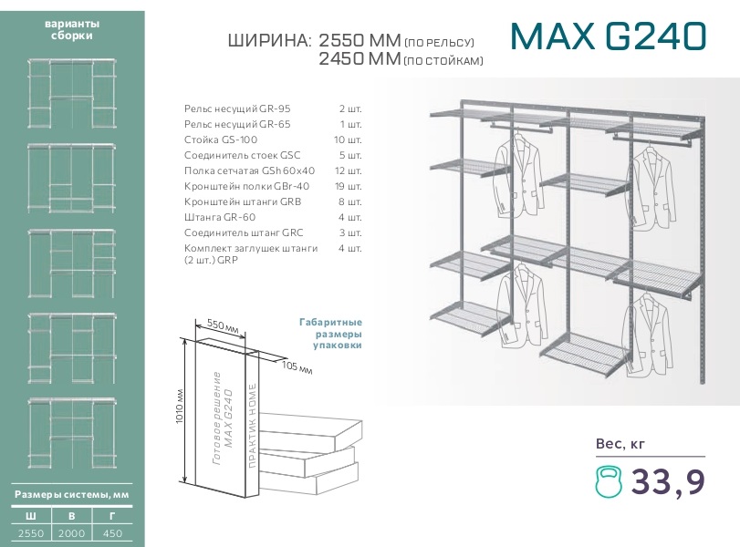 - Саморезы ∅ 5х50 mm (для рельсов) – 19 шт.