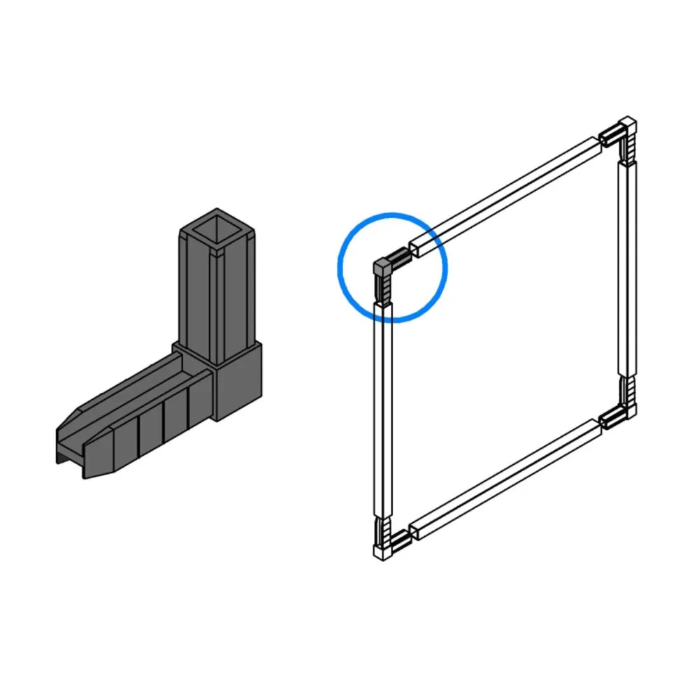 Монтаж коннектора осуществляется легко и быстро, что позволяет без труда создавать различные конструкции, будь то опоры для столов или столешниц.