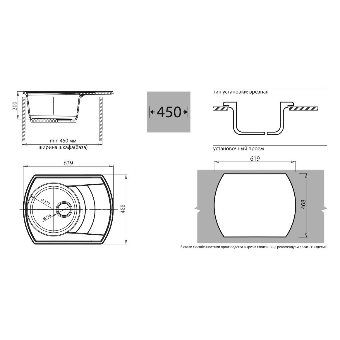 Общий размер мойки