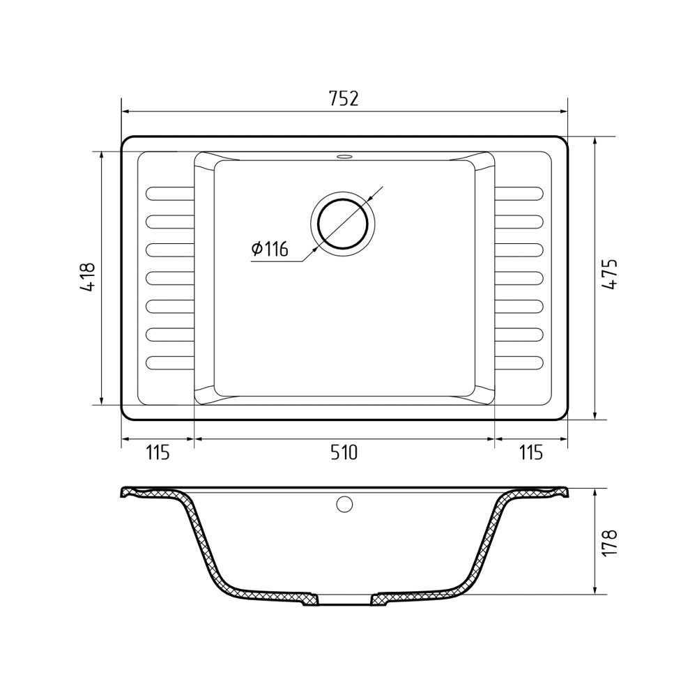 Мойка для кухни GranFest Quarz GF-ZW-71 имеет вместительную чашу, в которой можно мыть даже объемные кастрюли, сковороды и другие кухонные принадлежности.