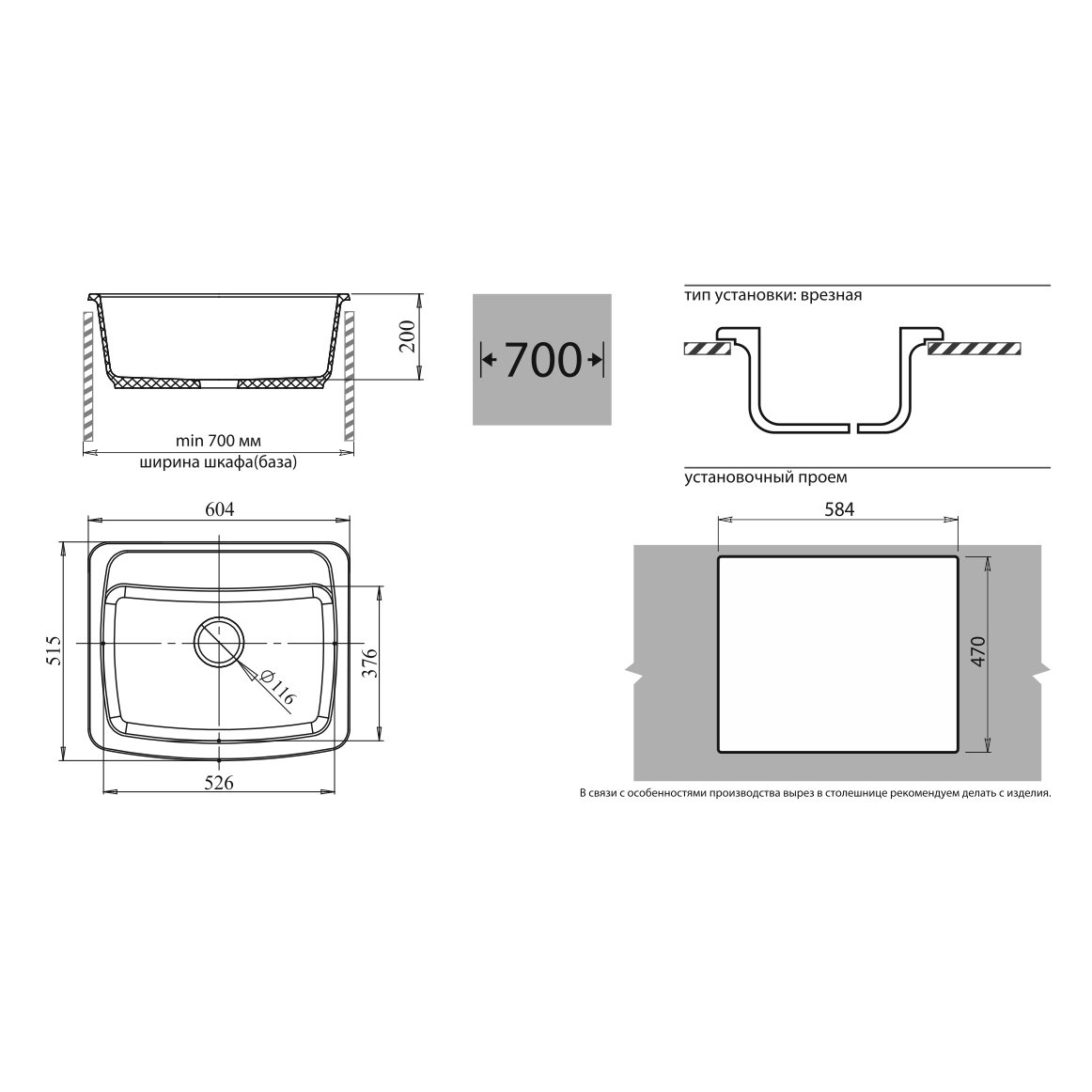 Мойка мрамор GF-S605 1чаша 604*515мм(бежевый)328