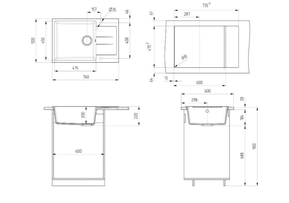 ULGRAN U-602 – односекционная реверсивная кухонная мойка с глубокой вместительной чашей. Данная мойка устанавливается в шкаф шириной от 60 см и является оборачиваемой.