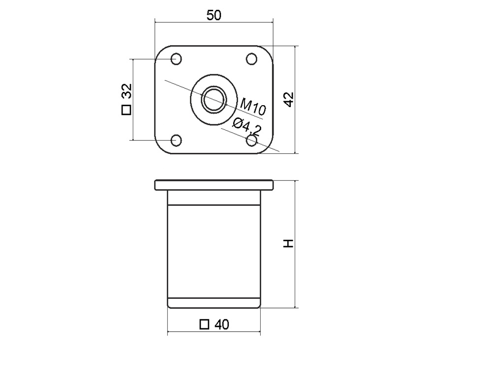 Опора регулируемая квадратная Н-100мм, черный матовый