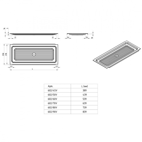 Поддон для сбора капель воды в процессе сушки посуды. Ширина каркаса (мм): 600. Ширина фасада (мм): 600. Материал: пластик. Страна производитель: Италия. Производитель: INOXA