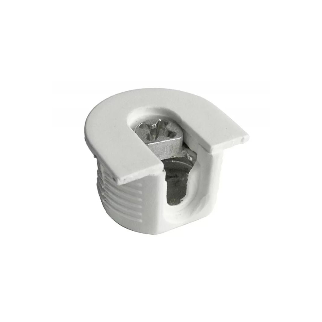 Стяжка-эксцентрик Hettich VB 35M/16 и VB 35V/16 представляет собой надежное решение для крепления полок и других элементов мебели. Она позволяет комфортно затягивать стяжку отверткой под углом 25 градусов к оси корпуса, что облегчает монтаж в труднодоступных местах. Специальная конструкция эксцентрика хеттих обеспечивает доступ для затягивания сверху через сквозное отверстие диаметром 10 мм, что удобно для нижних полок с ограниченным доступом снизу. Это позволяет избежать ослабления соединения даже при повторном затягивании, благодаря большому пути затягивания и компенсации допусков. В качестве ответной части используются саморезные штоки DU 321 и DU 322 Hettich.