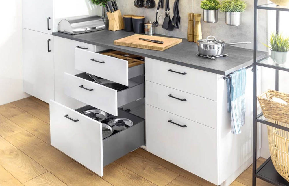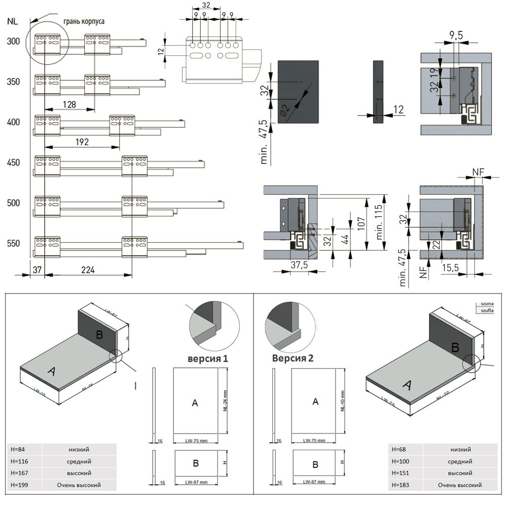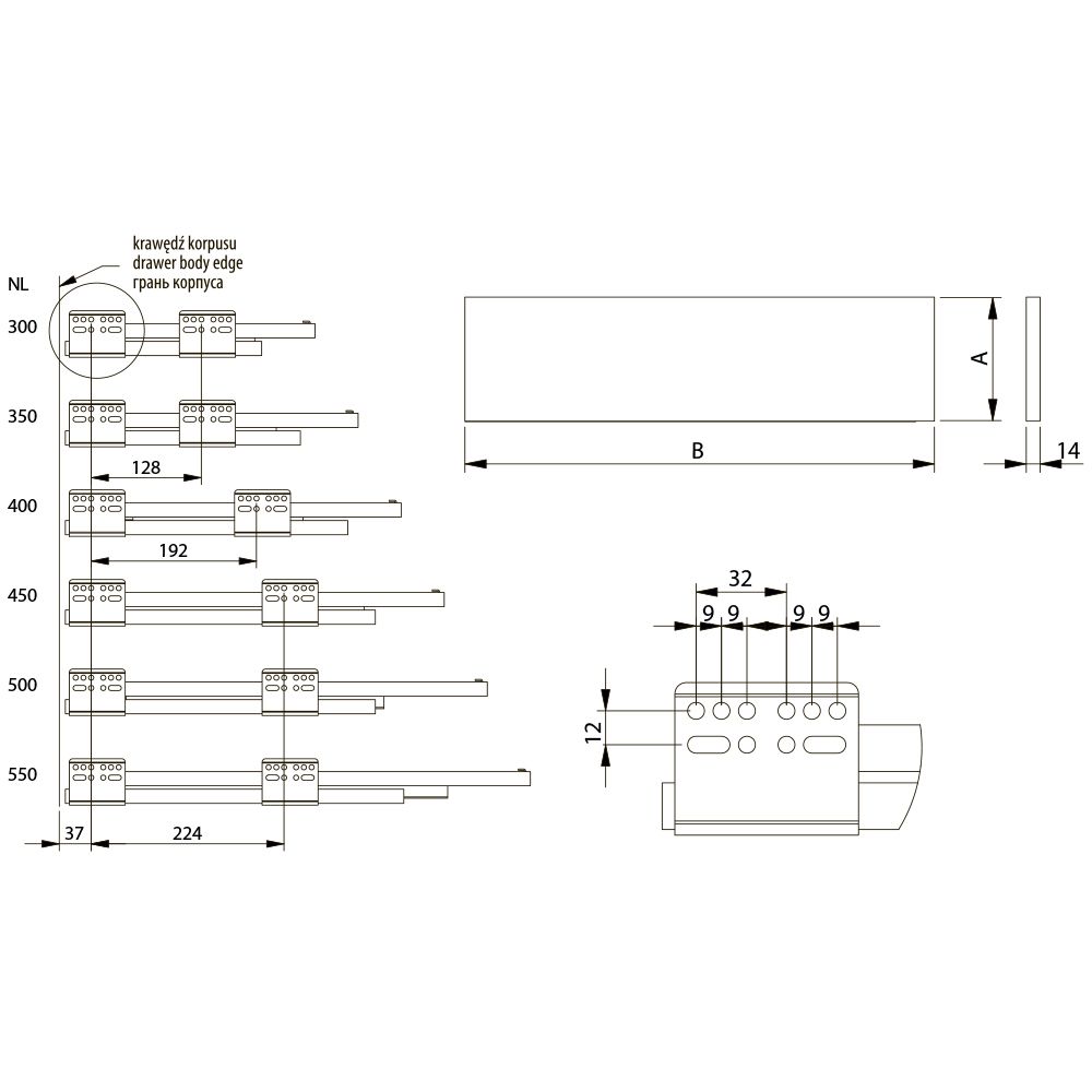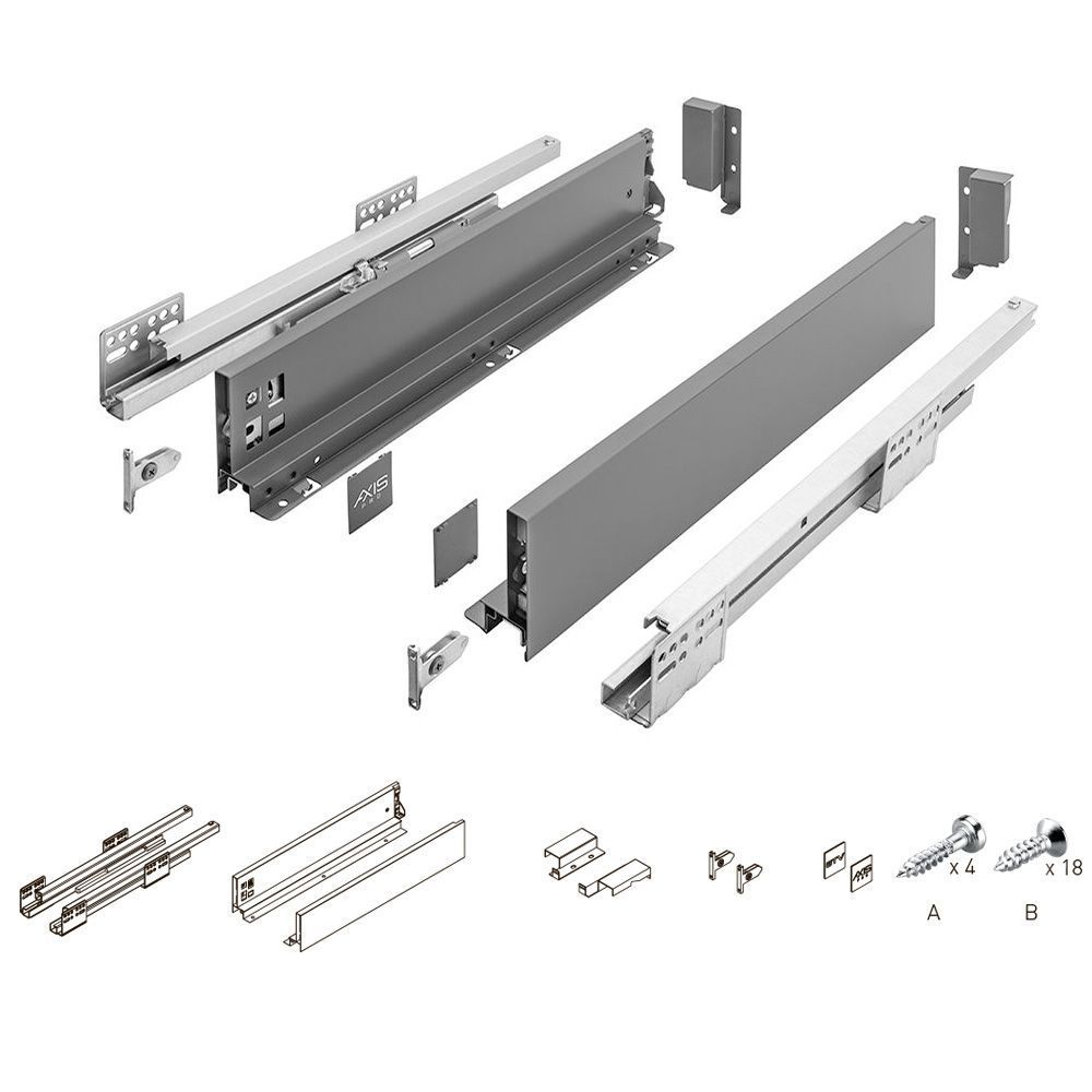 Выдвижной ящик GTV AXIS PRO L-500 мм, низкий H-86 мм, антрацит — это решение нового поколения для кухонных гарнитуров и мебели для ванных комнат, обеспечивающее высокую эргономику и функциональность. Ящик gtv оснащен полновыкатными шариковыми направляющими, что гарантирует легкость и плавность выдвижения. Комплектация включает все необходимые элементы: боковые панели, крепления для фасада и задней стенки, заглушки и саморезы для монтажа. Эстетичный дизайн с тонкими боковыми стенками (14 мм) увеличивает вместимость, а нижний монтаж направляющих позволяет максимально использовать пространство. Регулировка фасада в вертикальной и горизонтальной плоскостях (+/- 2 мм) обеспечивает идеальную подгонку. Мягкое закрытие с доводчиком делает использование ящика GTV комфортным и бесшумным, что особенно важно в современных интерьерах.